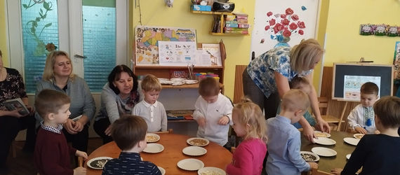 Вихователь Цюпка М.Ю. разом зі своїми вихованцями групи"Барвінок" сьогоднішній день провели по- особливому - діти отримали цікаву інформацію про хліб та багато приємних емоції. Родзинкою дня стала дружна, старанна праця малят -виготовлення, випікання і смакування печева.Тож нехай він, хліб, – совість наша – буде завжди лежати на столі; на вишитому рушнику, а нашою першою молитвою нехай буде хвала хлібу.